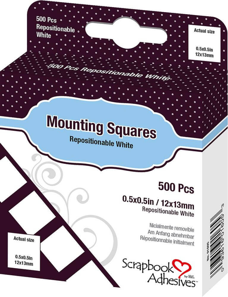 Scrapbook Adhesives Mounting Squares 500/Pkg-Repositionable, White, .5″X.5″