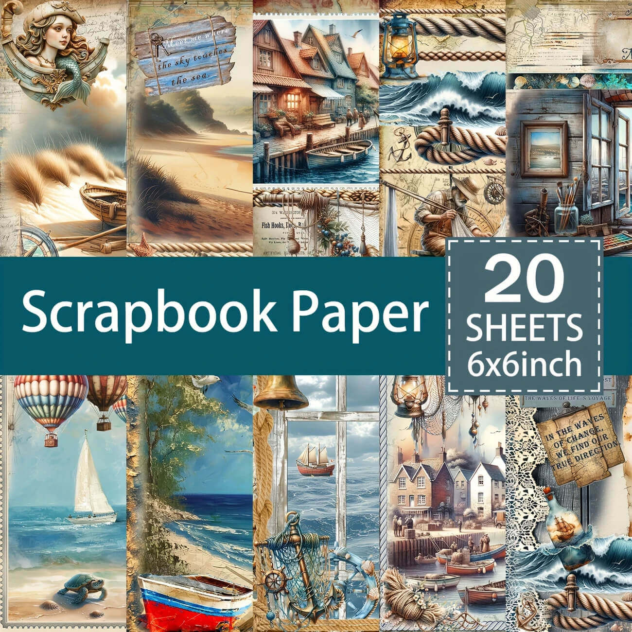 20 Sheets 6×6 Nautical Theme Scrapbooking Paper