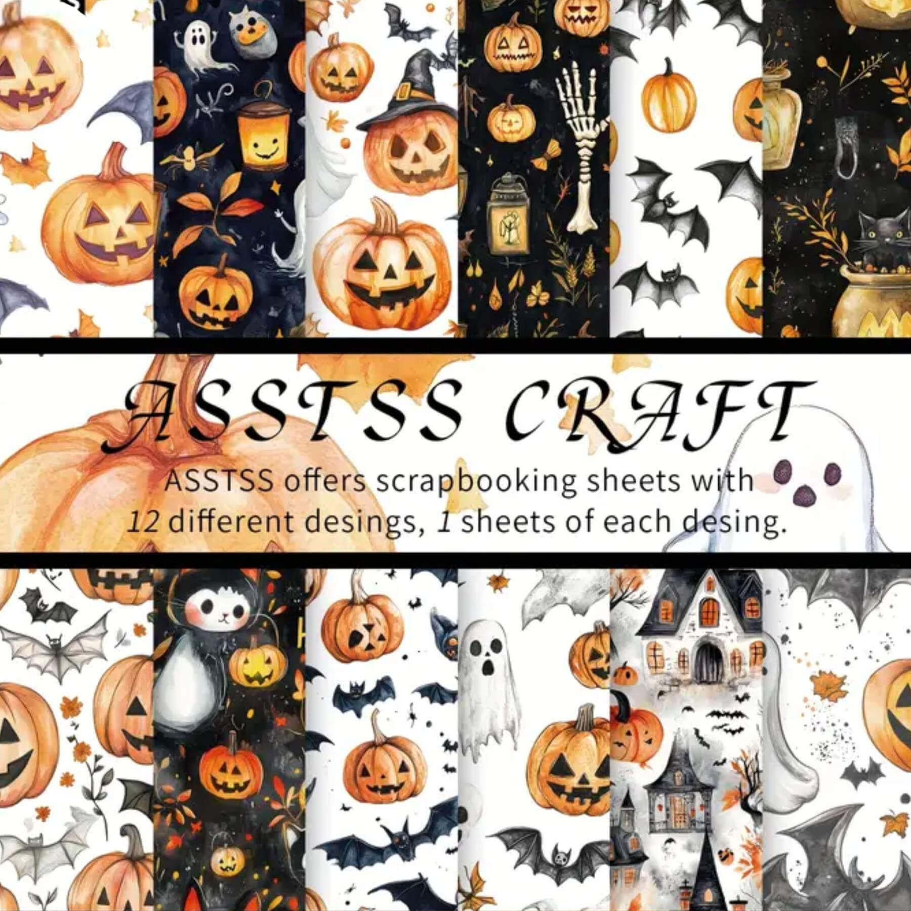 6×6 Pumpkin Ghost Bats Mix Halloween Scrapbooking Paper