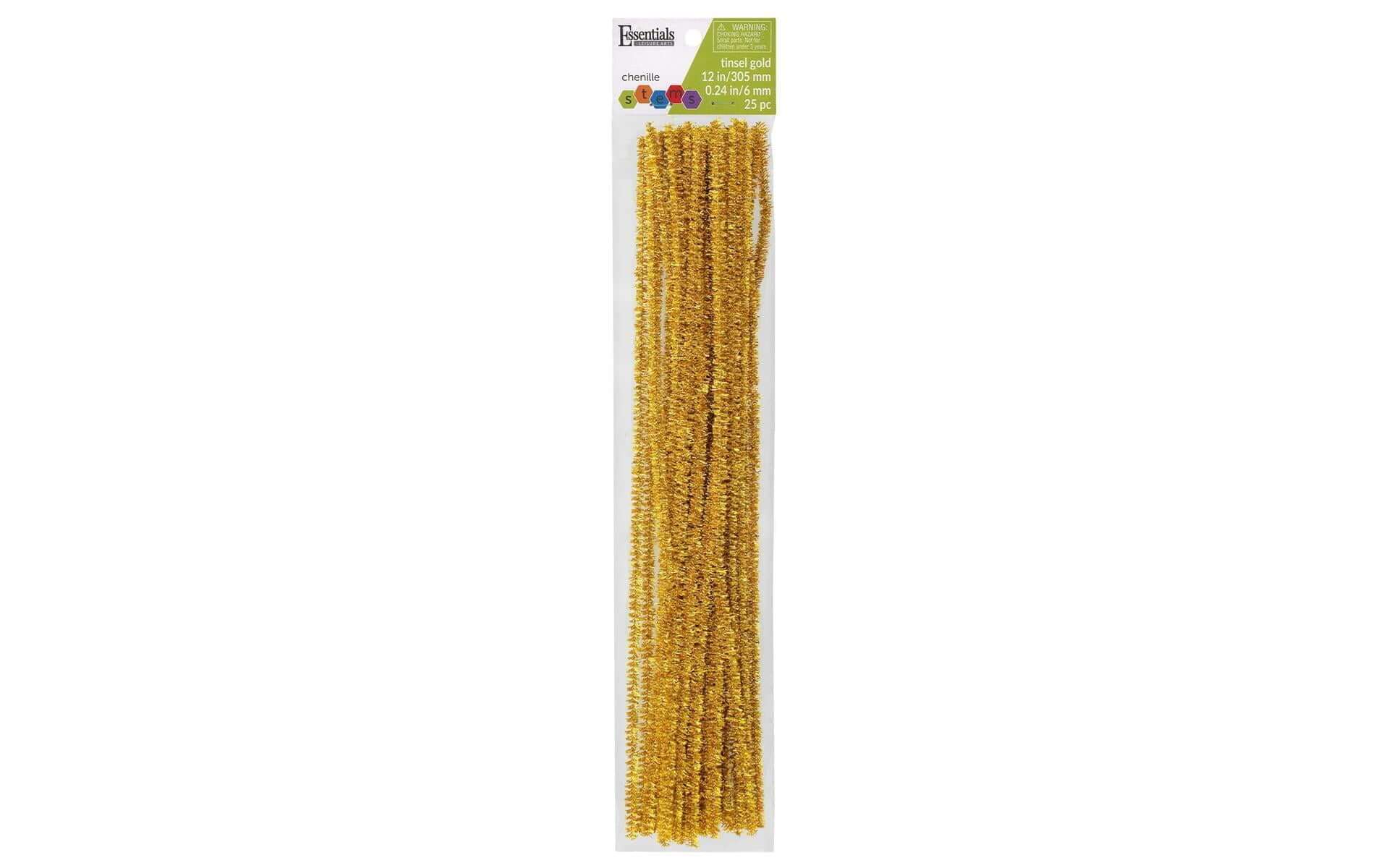 EBL Chenille Stem 12″ 6mm Tinsel Gold 25pc