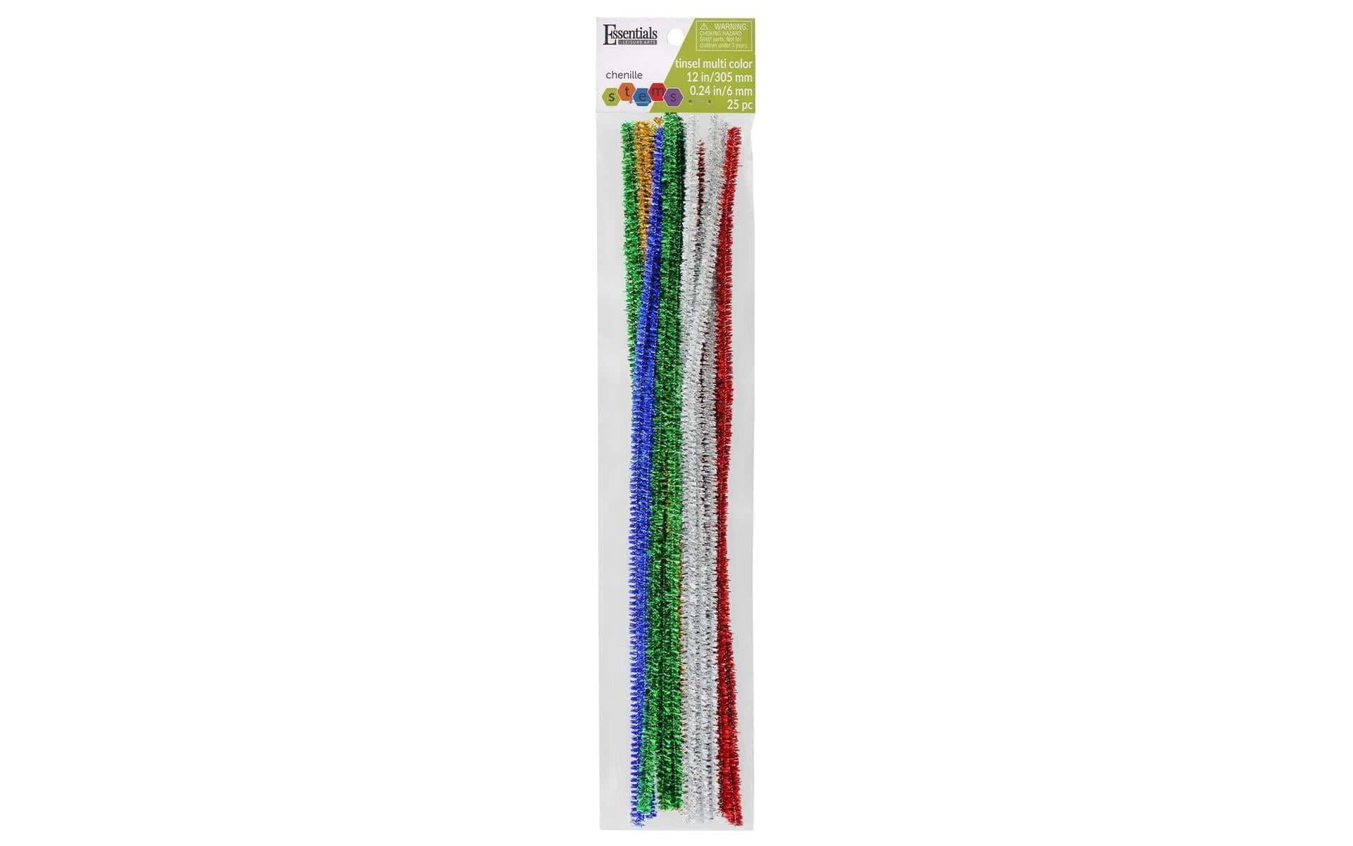 EBL Chenille Stem 12″ 6mm Tinsel Multi 25pc