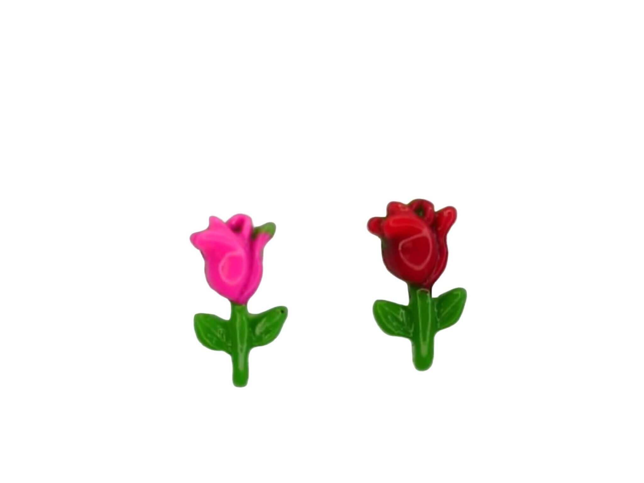 100pc tiny 1cm red and pink roses on stems flat back resin