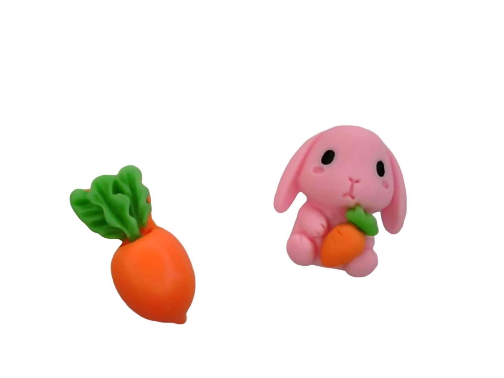 12pc 6 Pink Bunny and 6 Carrot 3/4in resin pieces