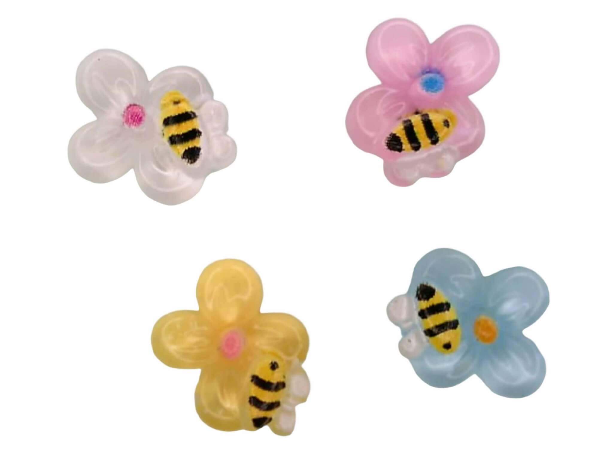 30pc Colored flowers with tiny bee Flat back resin 1cm