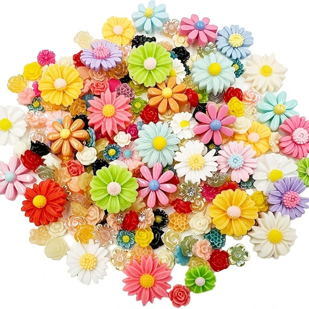 100pc Mixed Flowers 1-3cm Flatback Resin