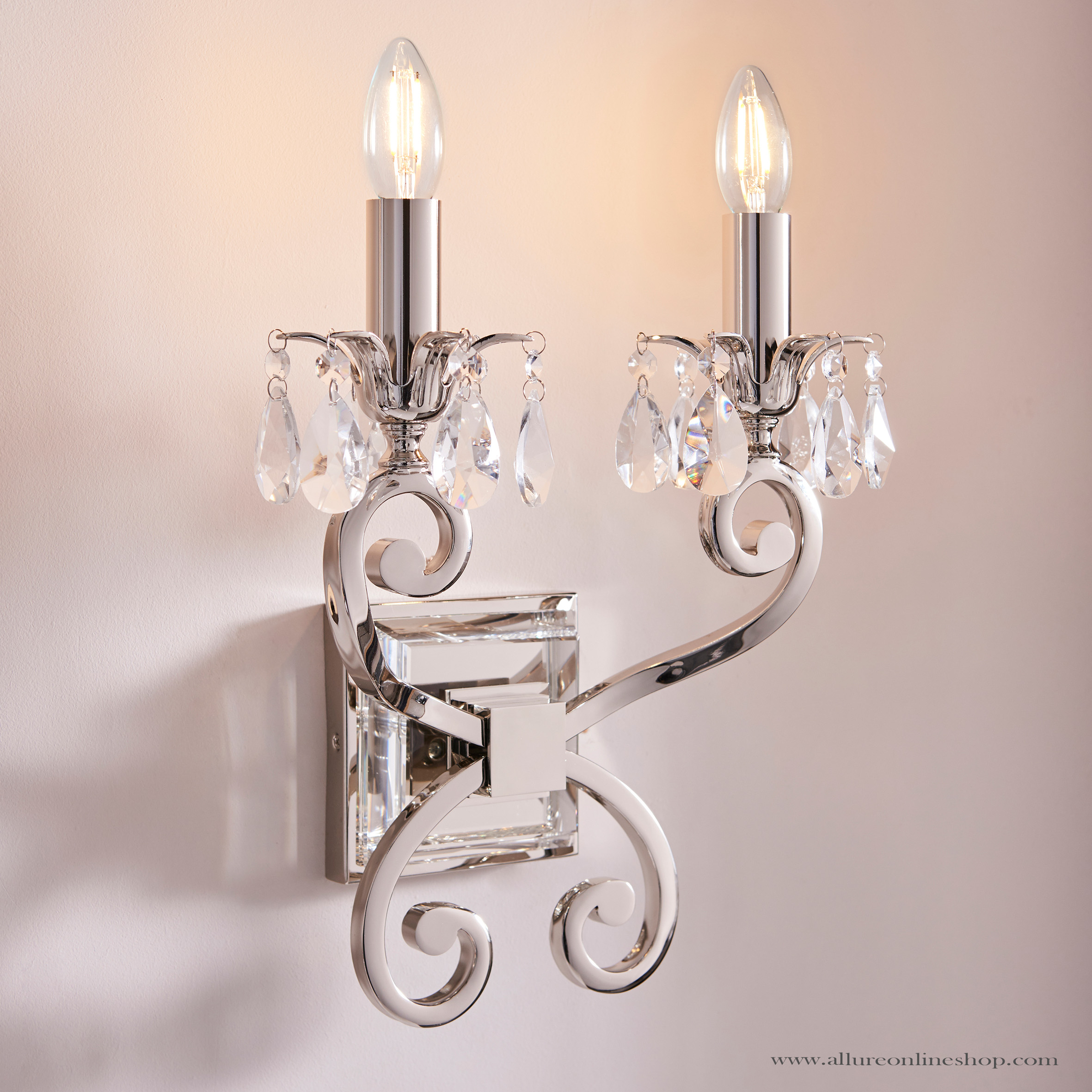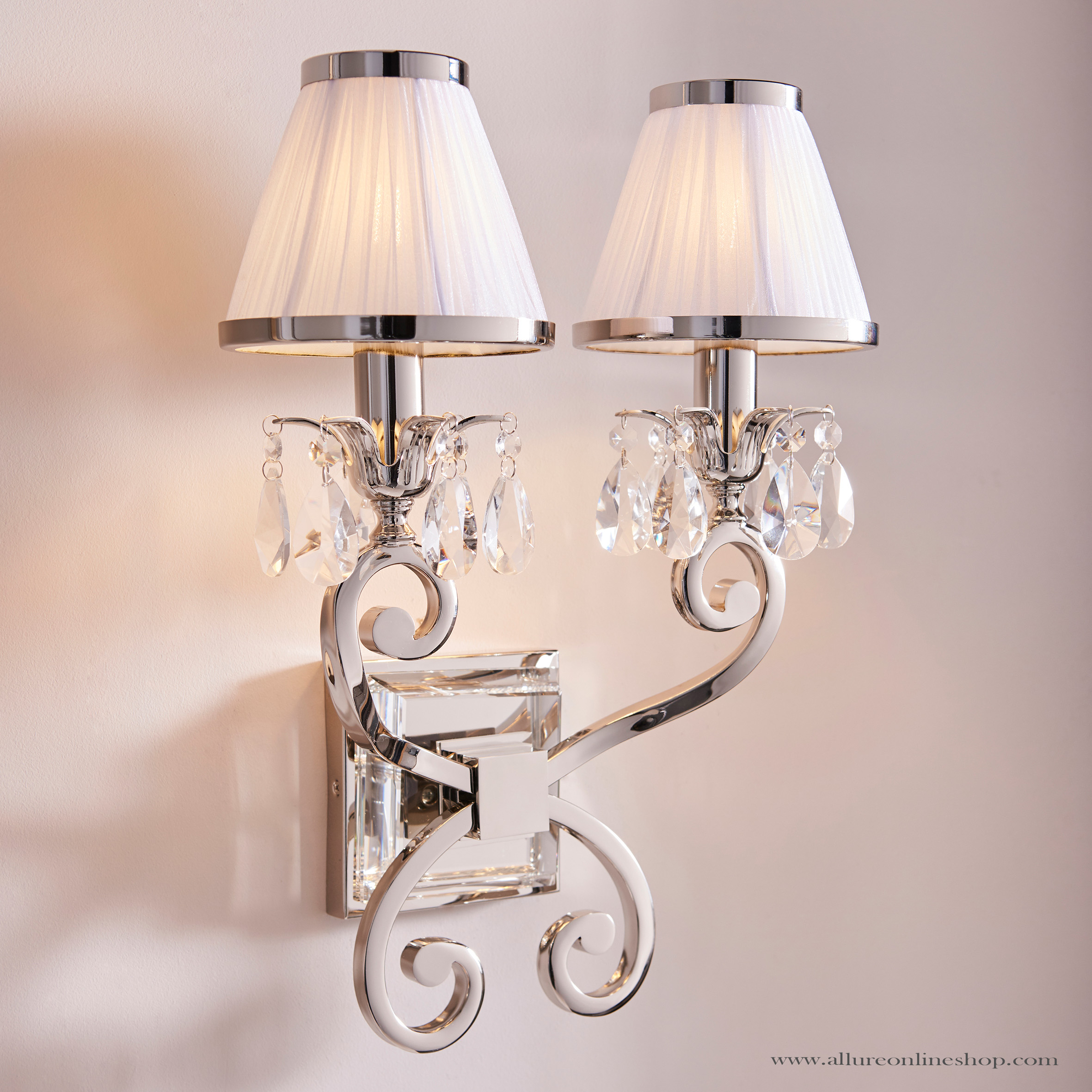 Vintage White & Nickel with Crystal Twin Wall Lamp