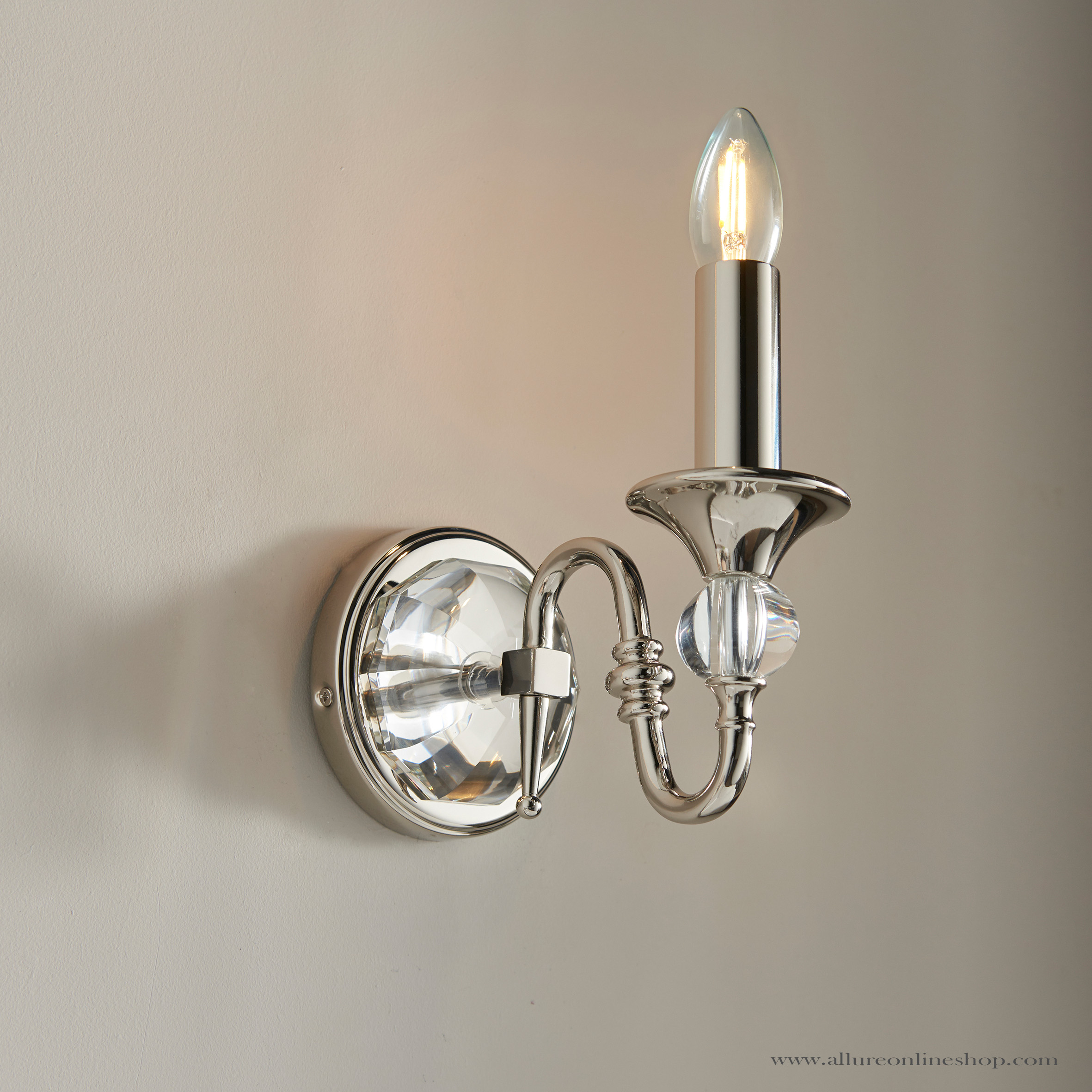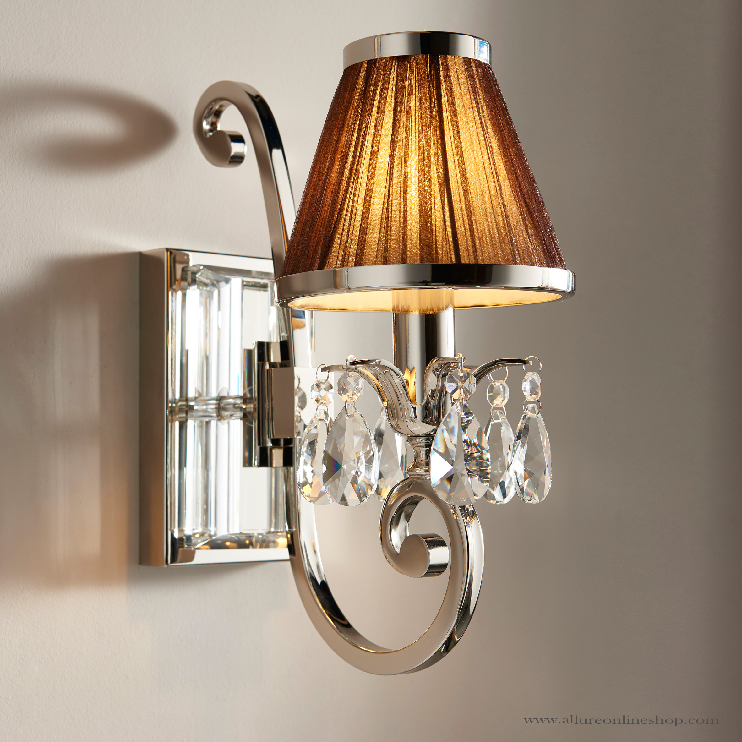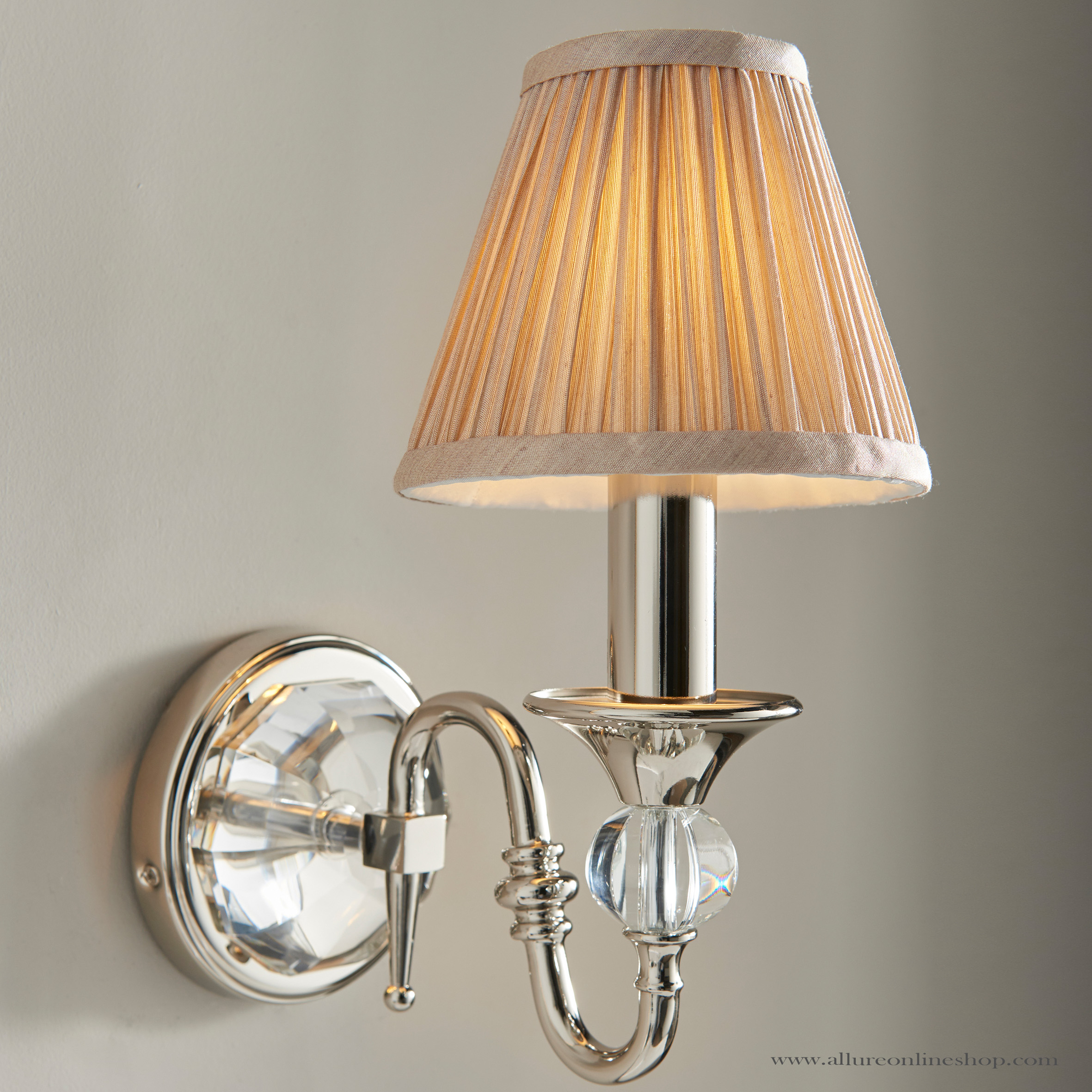 Nickel Single Wall With Crystal Embellishments & Beige Shade