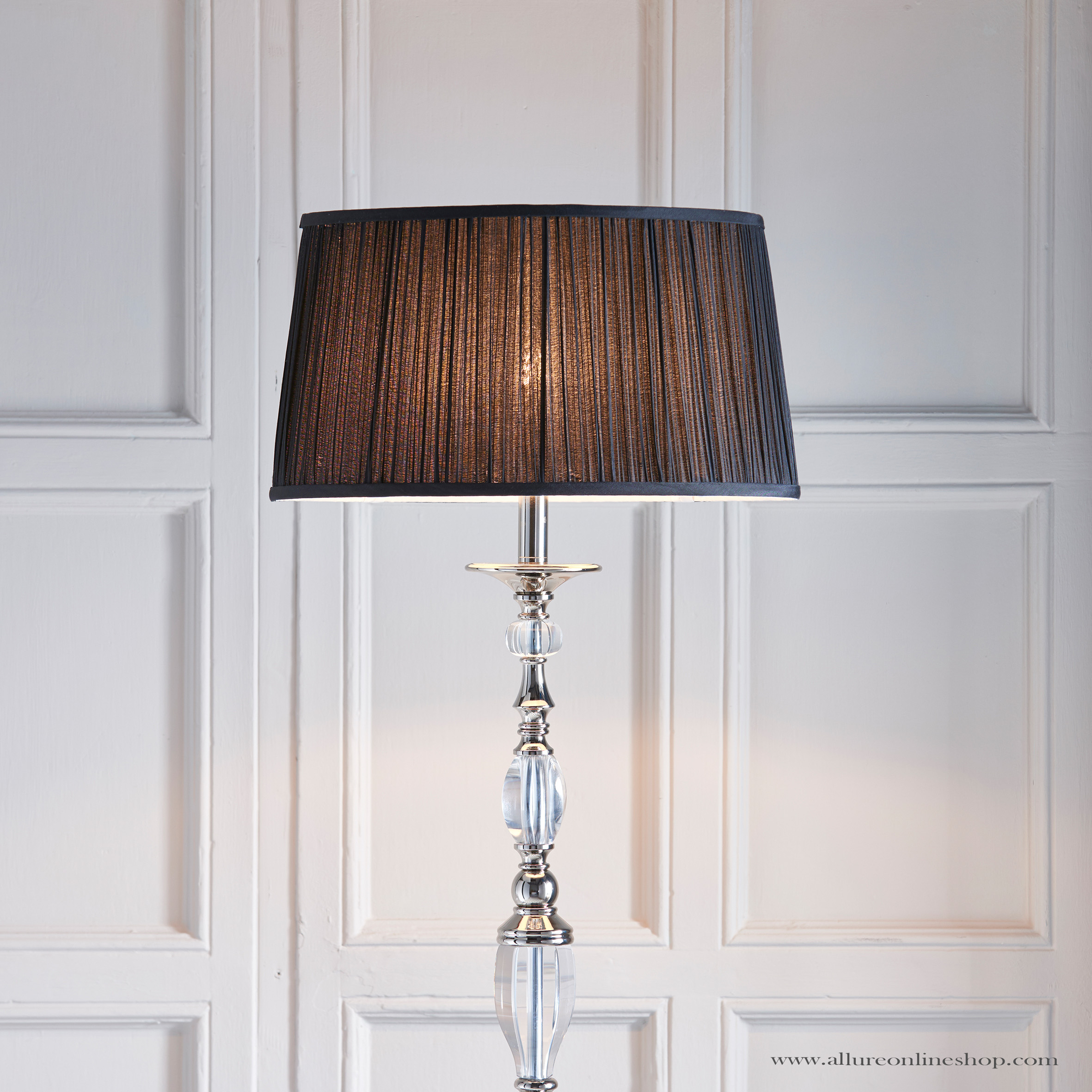 Nickel Floor With Crystal Embellishments & Beige Shade